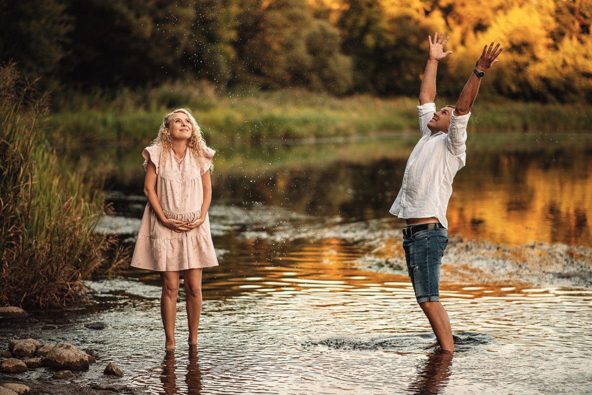 Ar gali būti kas nors geriau už laimingus, besišypsančius na ir apskritai linksmus žmonės? Nebent tik nėščioji, kuri sako, jog nori ir gali su suknele atsisėsti į vandenį! Ši fotosesija tarsi dvilypė – ir mistiška, paslaptinga, bet tuo pačiu ir linksma, nuotaikinga, nes užbaigėm ją visišku išsidūkimu vandeny! Kaip gera fotografuoti puikiai nusiteikusius žmones.
