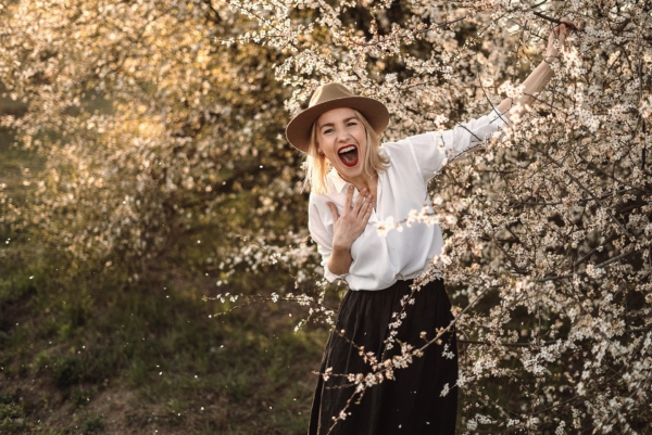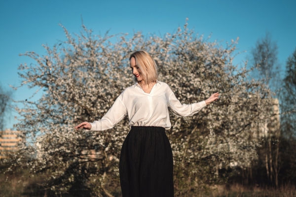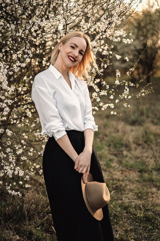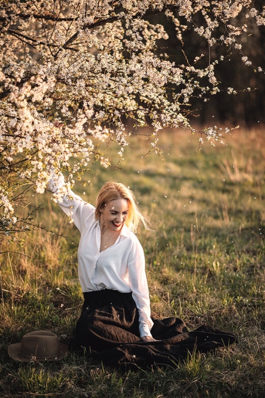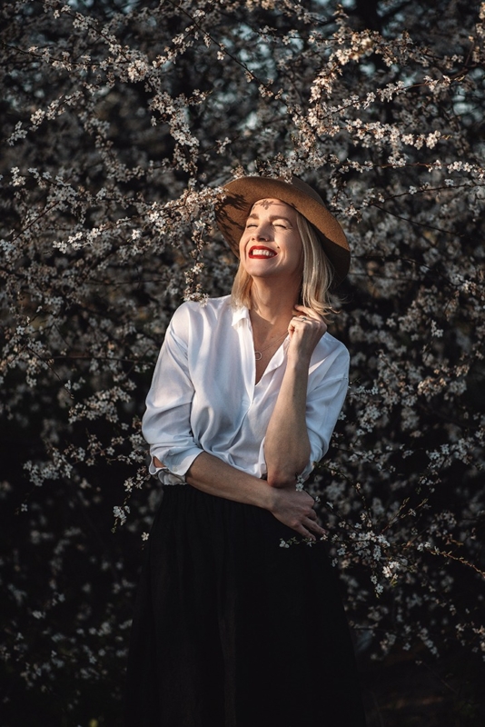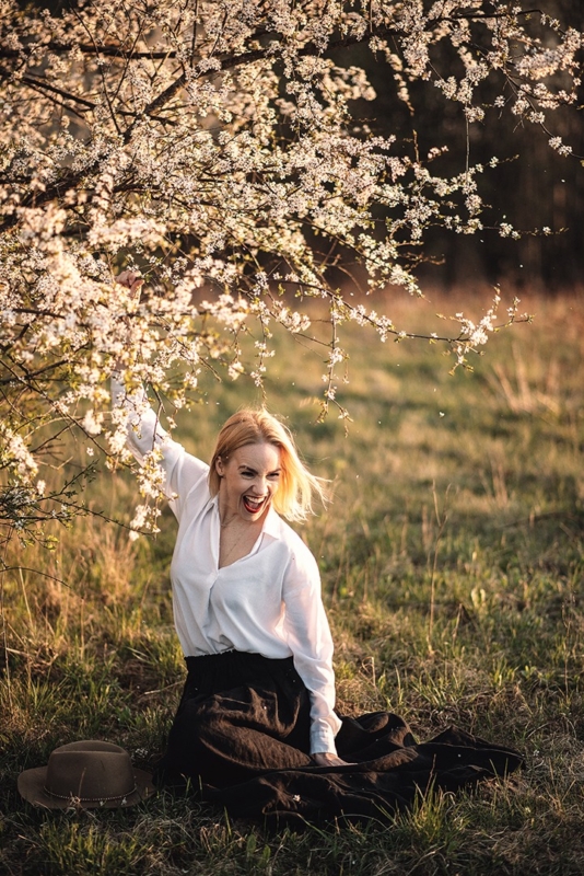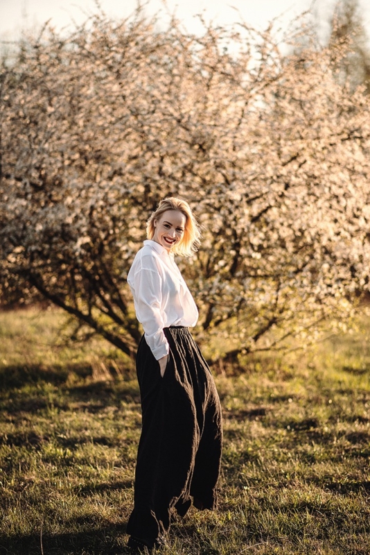 Ieva tiesiog tryško emocijomis – man reikėjo tik spėti jas gaudyti! Tokia charizmatiška ir ryški asmenybė, kad žiūrint šios fotosesijos nuotraukas jos energija sklinda net per ekraną. Atskleisiu mažą paslaptį. Susitikome mes trumpam, tik mini fotosesijai prie žydinčių krūmų, bet laikas taip praskriejo, kad vietoj trisdešimt minučių gavosi beveik valanda ir galybė nuostabių kadrų! Na, kartais būna ir taip! Vis bežiūrint į šias nuotraukas mane užplūsta vien tik geriausios emocijos ir prisiminimai, todėl labai noriu pasidalinti ir su Jumis šia fotoistorija.
